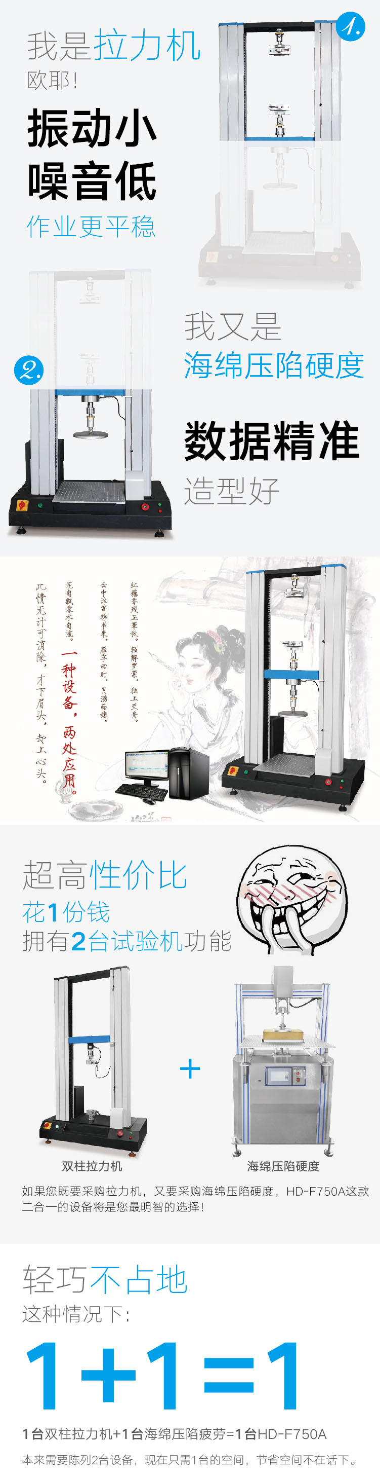 海綿壓陷硬度與拉壓(二合一)試(shì)驗機HD-F750A