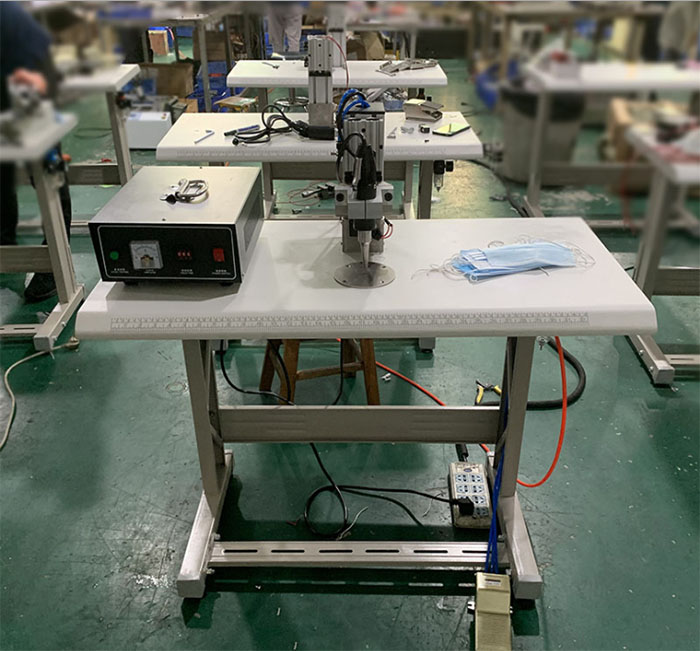 本機采用超聲波進行焊接,有效的克服傳統超聲波點焊之後出現的斷帶、焊接不牢等問題;特殊的人性化底模設計,加配紅外線定位裝置(zhì),確保人員操(cāo)作(zuò)時定位不準、口罩偏移(yí)等技(jì)術難點。  可(kě)用於杯形(xíng)口罩、立體口罩(zhào)耳帶點焊及織帶、魔術貼、工藝品、小型塑(sù)膠件等點焊(hàn)接.