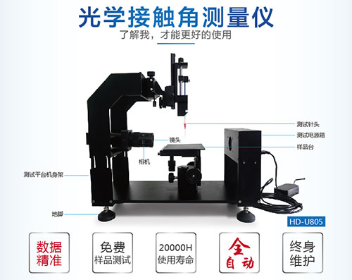 水滴角測試儀用於測試液體對固(gù)體的接觸角,即通(tōng)過測量液(yè)體與固體間所形成接觸角的(de)大小,判(pàn)斷液體對固體的浸潤性。廣泛應用於(yú)矽晶、液晶、玻璃(lí)、纖維、合成材料(liào)、油墨、塗(tú)料、農藥等領域的測試與研究。 |