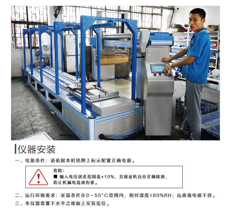 本機是對輪滑鞋或製動器被外物衝(chōng)擊後,鞋輪(lún)或(huò)製動器是否(fǒu)受損。測試時以(yǐ)一定的荷重一定的速度撞擊鋼(gāng)板,檢查輪滑鞋受損情況。采用(yòng)PLC控製,次數可任意設定(dìng),速度可任意選擇。