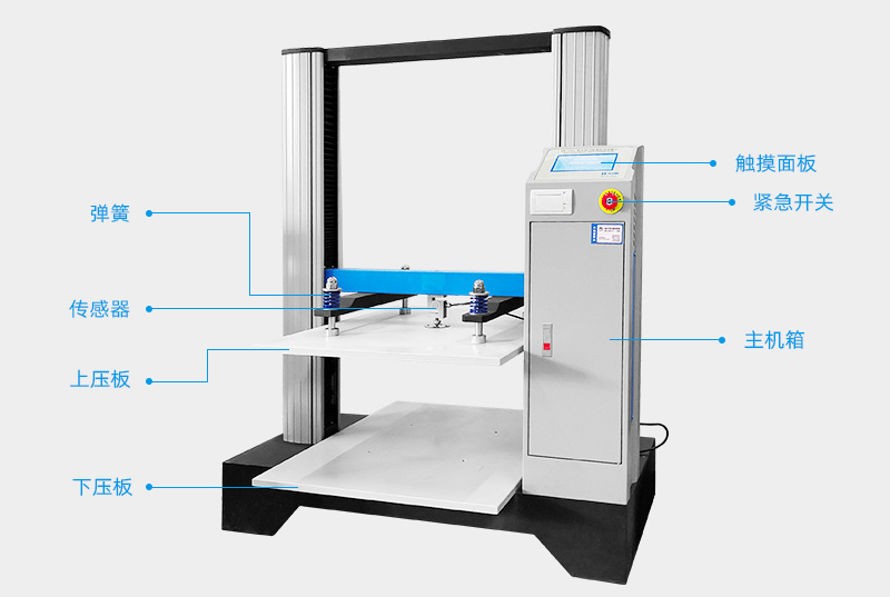 容量選擇 10KN傳(chuán)感器 測試空間 約700mm×900mm×900mm(L*W*H) 外形尺寸 約(yuē)1120mm×900mm×1428mm(L*W*H) 測試速度 10±3mm/min 升降速度(dù) 120mm/min 荷重(chóng)分解度 1/250,000 荷重精度(dù) ±0.5%以(yǐ)內 絲 杆 滾珠絲(sī)杆(gǎn) 單位切換 gf/kgf/N//kN/Ibf/t 報表項目(mù) 序號、峰值、平均值、設定持壓值、持壓時間 數據輸出(chū) 熱敏打印機輸出 控製方式 觸摸屏控製 重量 約350kg 電源 1∮ AC 220V 整機功率(lǜ) 約500W 主要測試項目 紙箱抗壓試驗、紙箱堆碼試驗 | ||