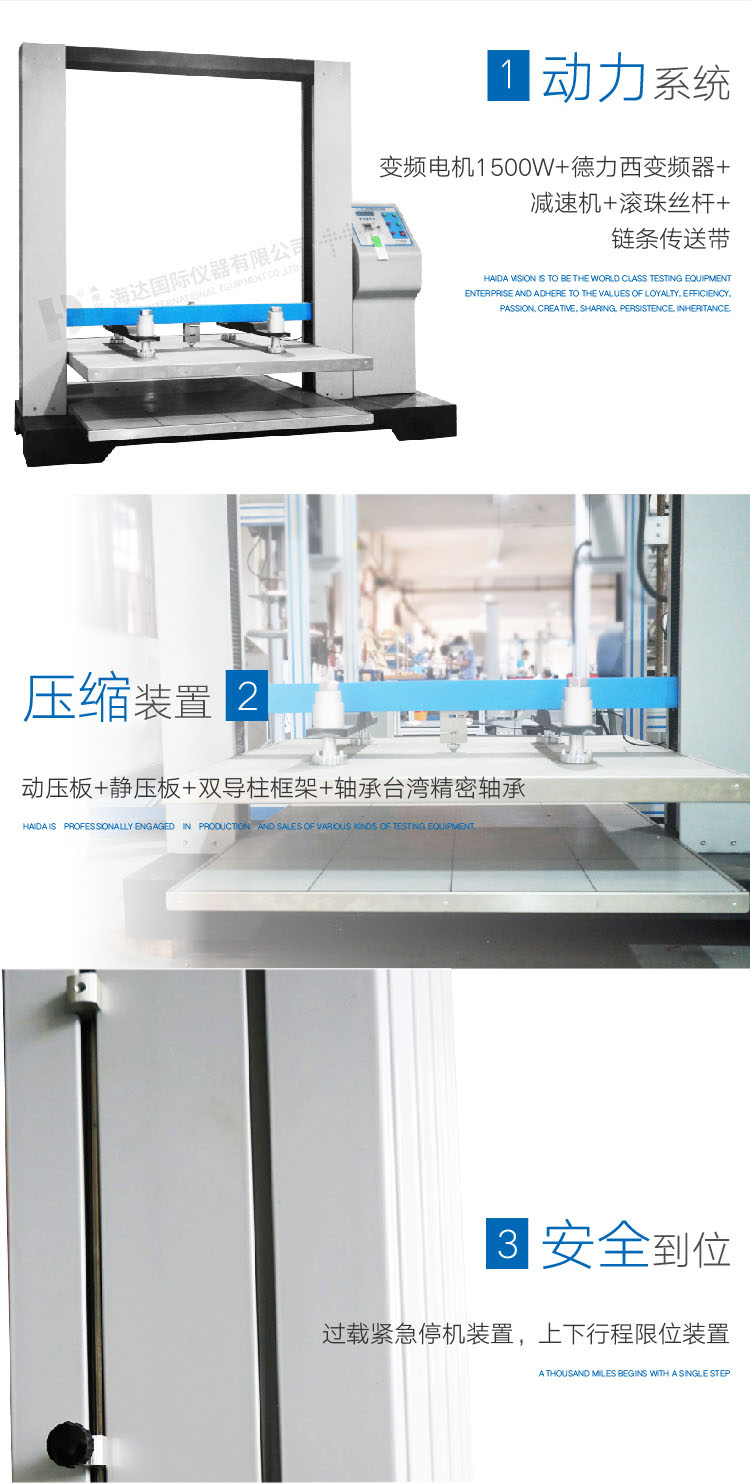 紙箱抗壓試(shì)驗機是一款專業用於測試紙箱抗壓性能的(de)試(shì)驗機,適用於瓦楞紙箱、蜂窩板箱(xiāng)等包裝件的耐壓、 形變、堆碼試驗。並兼顧塑料(liào)桶(食用油、礦泉水)、紙桶、紙盒、紙罐、集裝容器桶(IBC桶)等容器的抗壓試驗。 設計標準:TAPPI-T804,JIS-20212,GB4857.3.4, ASTM-D642, QB/T1048, BS EN ISO 12048, GB/T4857.16, GB/T8167, GB/T8168, GB/T4857.3,GB/T4857.4 | ||